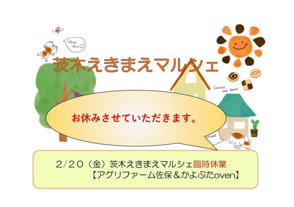 2/20(金)えきまえマルシェ臨時休業【アグリファーム佐保&かよぶたoven】