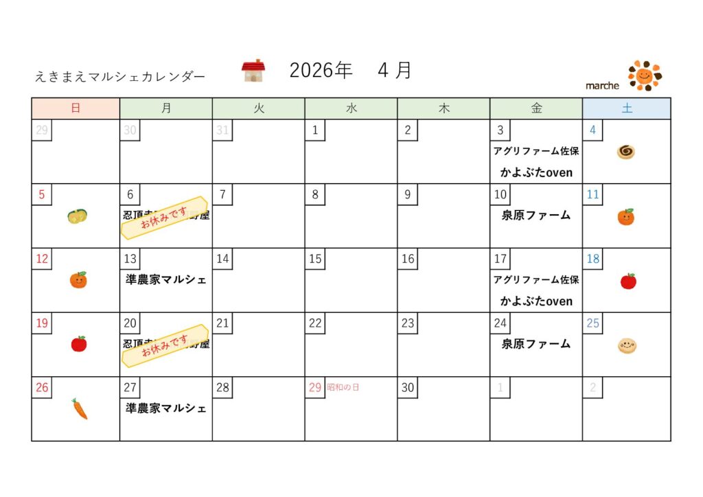 4/3(金)えきまえマルシェ開催【アグリファーム佐保&かよぶたoven】