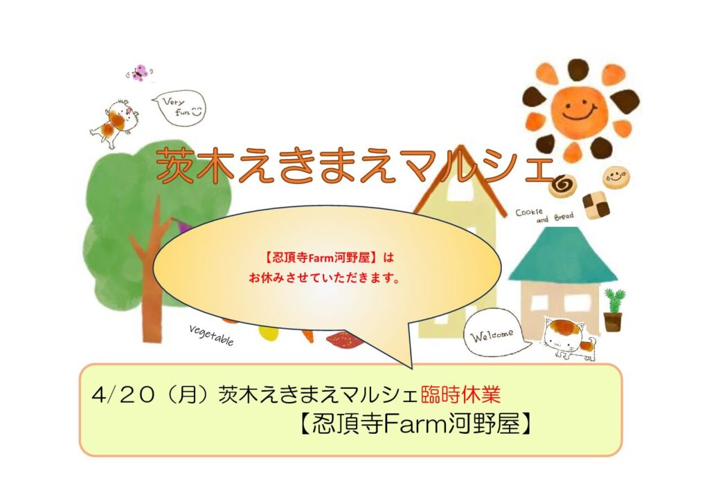 4/20(月)えきまえマルシェ臨時休業【忍頂寺Farm河野屋】