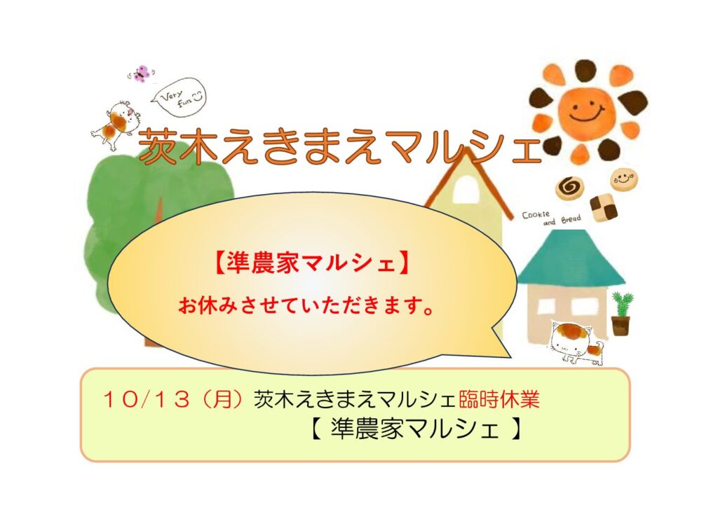 10/13(月)えきまえマルシェ臨時休業【準農家マルシェ】