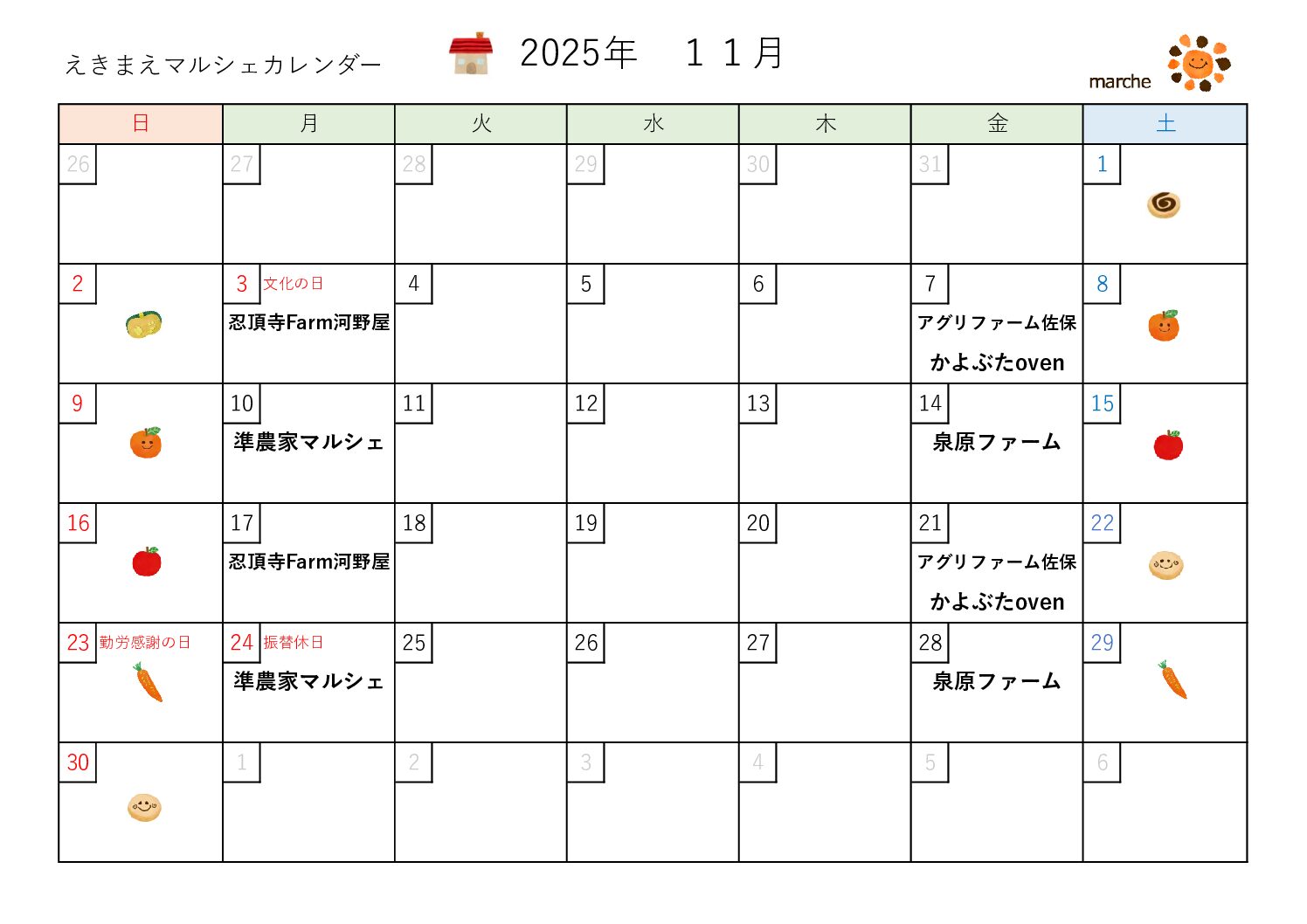11月の【えきまえマルシェ】の開催予定が決まりました。
