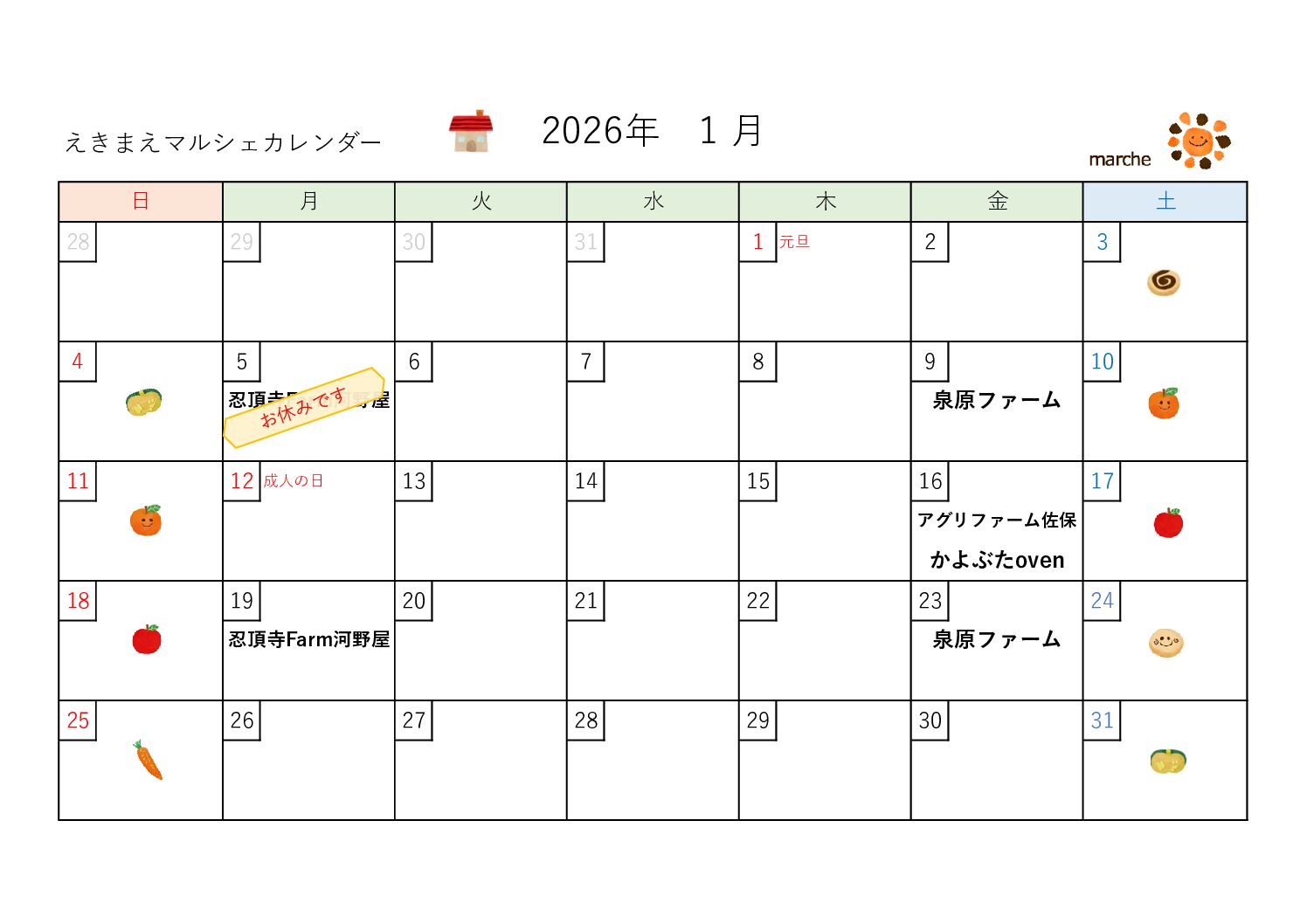 1月、2月、3月は、準農家マルシェがお休みとなります。