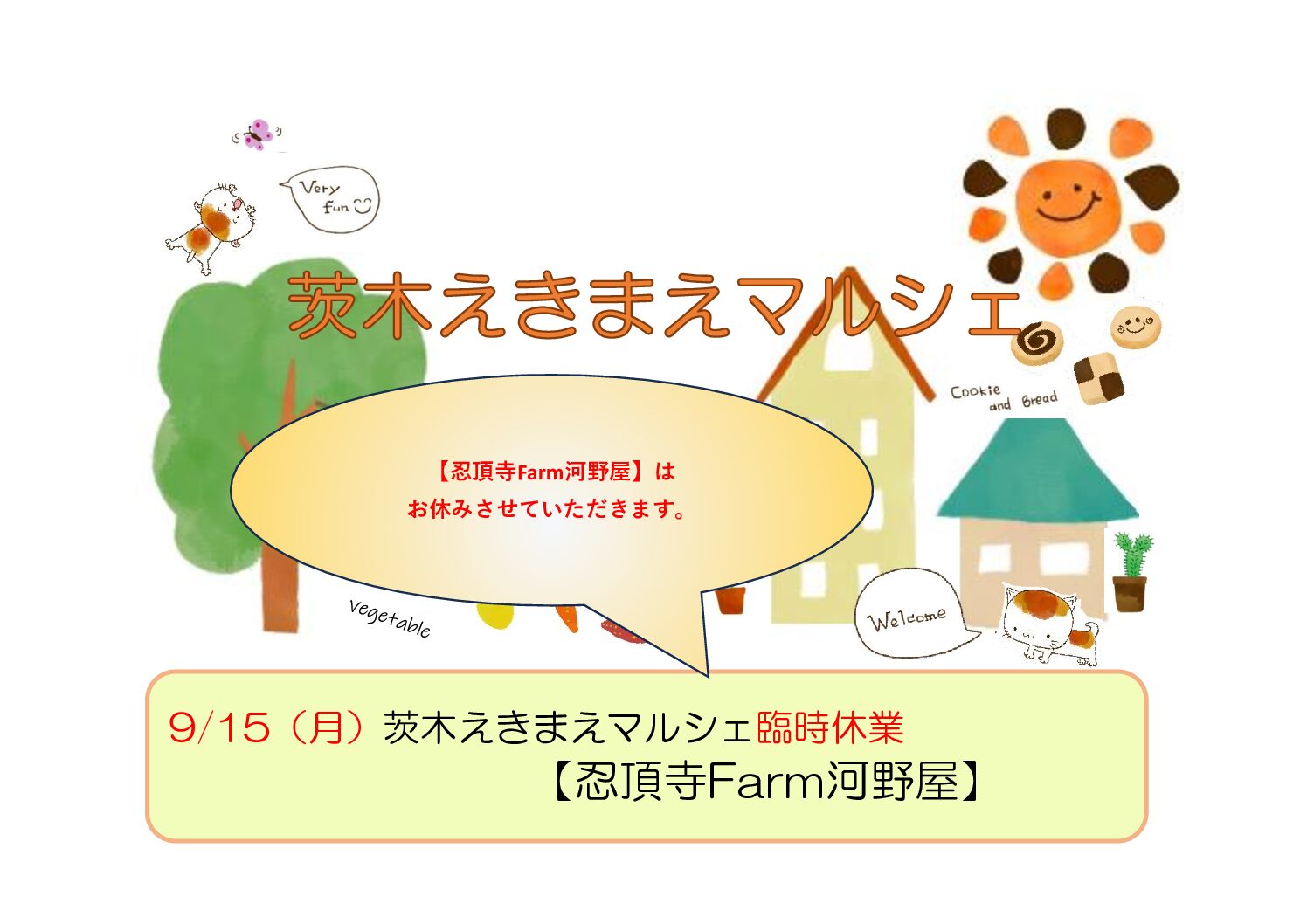 9/15(月)えきまえマルシェ臨時休業【忍頂寺Farm河野屋】